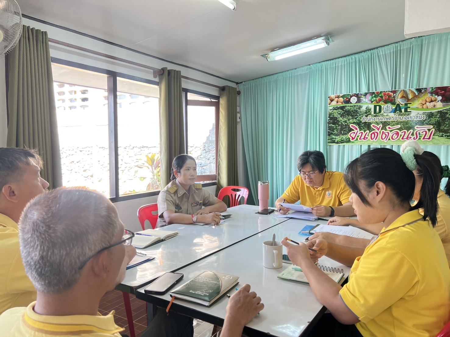 วันจันทร์ที่ 10 กุมภาพันธ์ 2568 นางสาววิชชุดา ตองอ่อน เกษตรอำเภอเขาสมิง พร้อมด้วย เจ้าหน้าที่สำนักงานเกษตรอำเภอเขาสมิง ประชุมสำนักงานเกษตรอำเภอเขาสมิง เพื่อวางแผนการดำเนินงานตามระบบการส่งเสริมการเกษตร ชี้แจงข้อราชการเกี่ยวกับแผนการโครงการส่งเสริมการเกษตร ประจำปีงบประมาณ พ.ศ. 2568 ณ ห้องประชุมสำนักงานเกษตรอำเภอเขาสมิง จังหวัดตราด