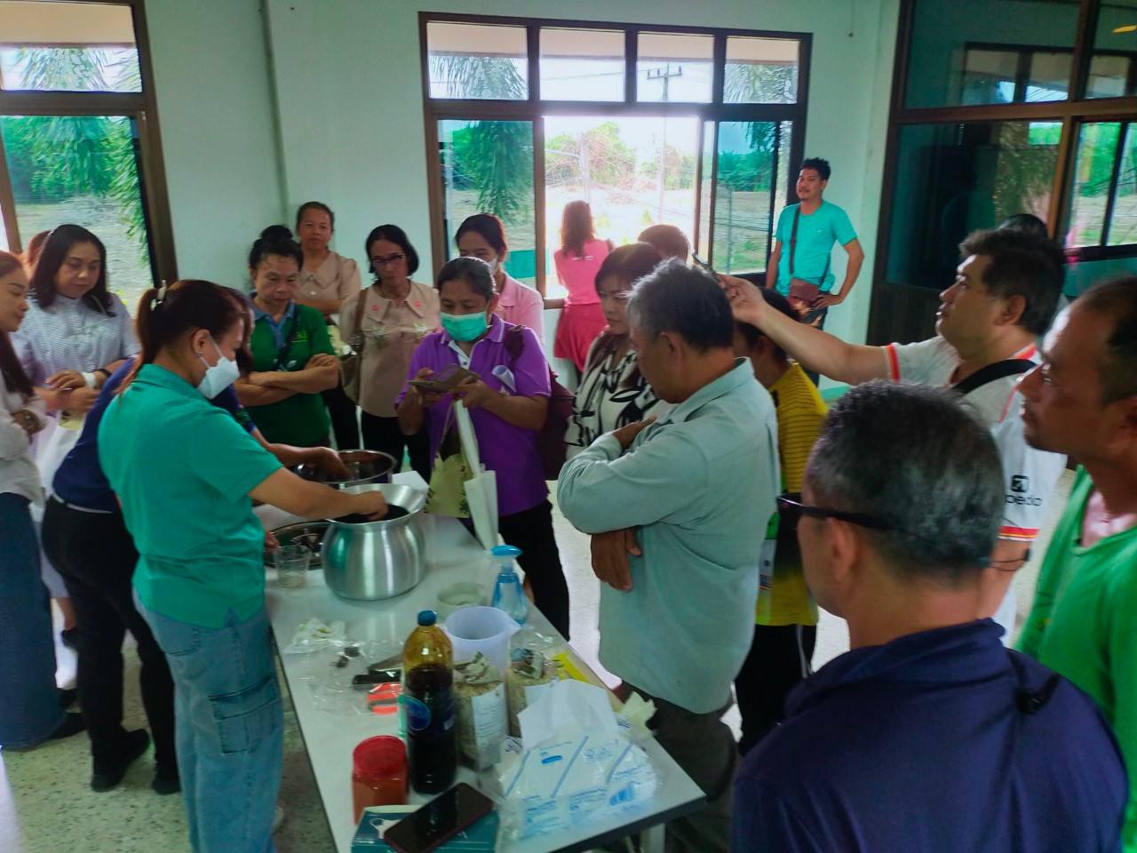 วันอังคารที่ 25 กุมภาพันธ์ 2568 นางชนัญกาญจน์ บัญญวัตวิวัฒน์ นักวิชาการส่งเสริมการเกษตรชำนาญการพิเศษ รักษาราชการแทน เกษตรอำเภอเขาสมิง มอบหมายให้ นายทรงศักดิ์ สีหานาค นักวิชาการส่งเสริมการเกษตรชำนาญการ เข้าร่วมการจัดฝึกอบรมหลักสูตร “การผลิตและการใช้สารออกฤทธิ์ทางชีวภาพจากเห็ดเรืองแสงสิริในรัศมีในการป้องกันกำจัดโรครากเน่าโคนเน่าทุเรียนแบบผสมผสาน” ภายใต้โครงการศูนย์เรียนรู้การเพิ่มประสิทธิภาพการผลิตสินค้าเกษตร ประจำปีงบประมาณ 2568 ณ ห้องประชุมองค์การบริหารส่วนตำบลท่าโสม อำเภอเขาสมิง จังหวัดตราด มีเกษตรกรเข้ารับการฝึกอบรมจำนวน 25 ราย