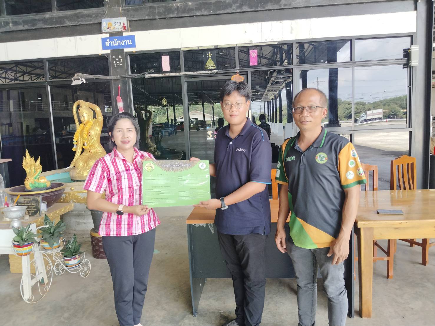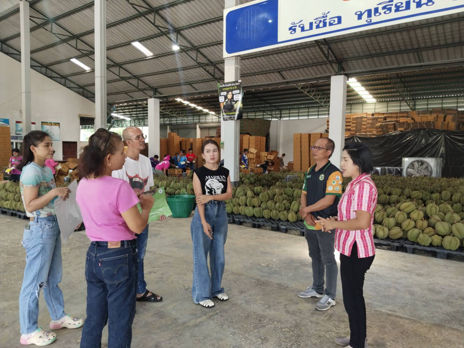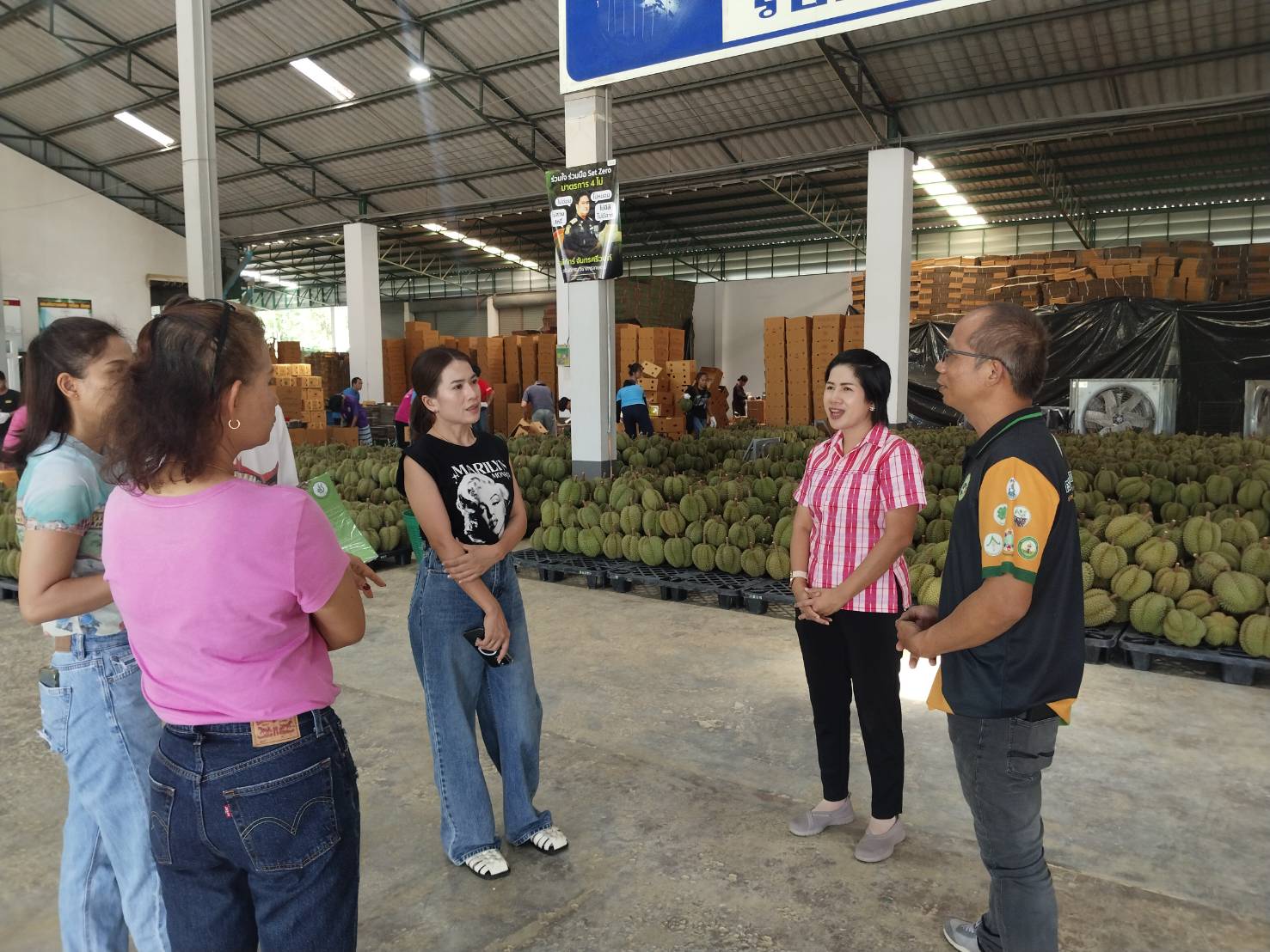 วันอังคารที่ 4 มีนาคม 2568 นางชนัญกาญจน์ บัญญวัตวิวัฒน์ นักวิชาการส่งเสริมการเกษตรชำนาญการพิเศษ รักษาราชการแทน เกษตรอำเภอเขาสมิง พร้อมด้วย นายทรงศักดิ์ สีหานาค นักวิชาการส่งเสริมการเกษตรชำนาญการ และเจ้าหน้าที่สำนักงานเกษตรอำเภอเขาสมิง ติดตามเยี่ยมเยียนการดำเนินกิจการของผู้ประกอบการโรงคัดบรรจุ และมอบโปสเตอร์ประชาสัมพันธ์ เพื่อสร้างการรับรู้มาตรฐานสินค้าเกษตร หลักปฏิบัติในการตรวจและรับผลทุเรียน สำหรับโรงรวบรวมและโรงคัดบรรจุ (มกษ. 9070-2566) ณ ล้งเอสที อินเตอร์ ฟรุ๊ต ตำบลเขาสมิง และล้งโกศล-ตู่ ตำบลทุ่งนนทรี อำเภอเขาสมิง จังหวัดตราด