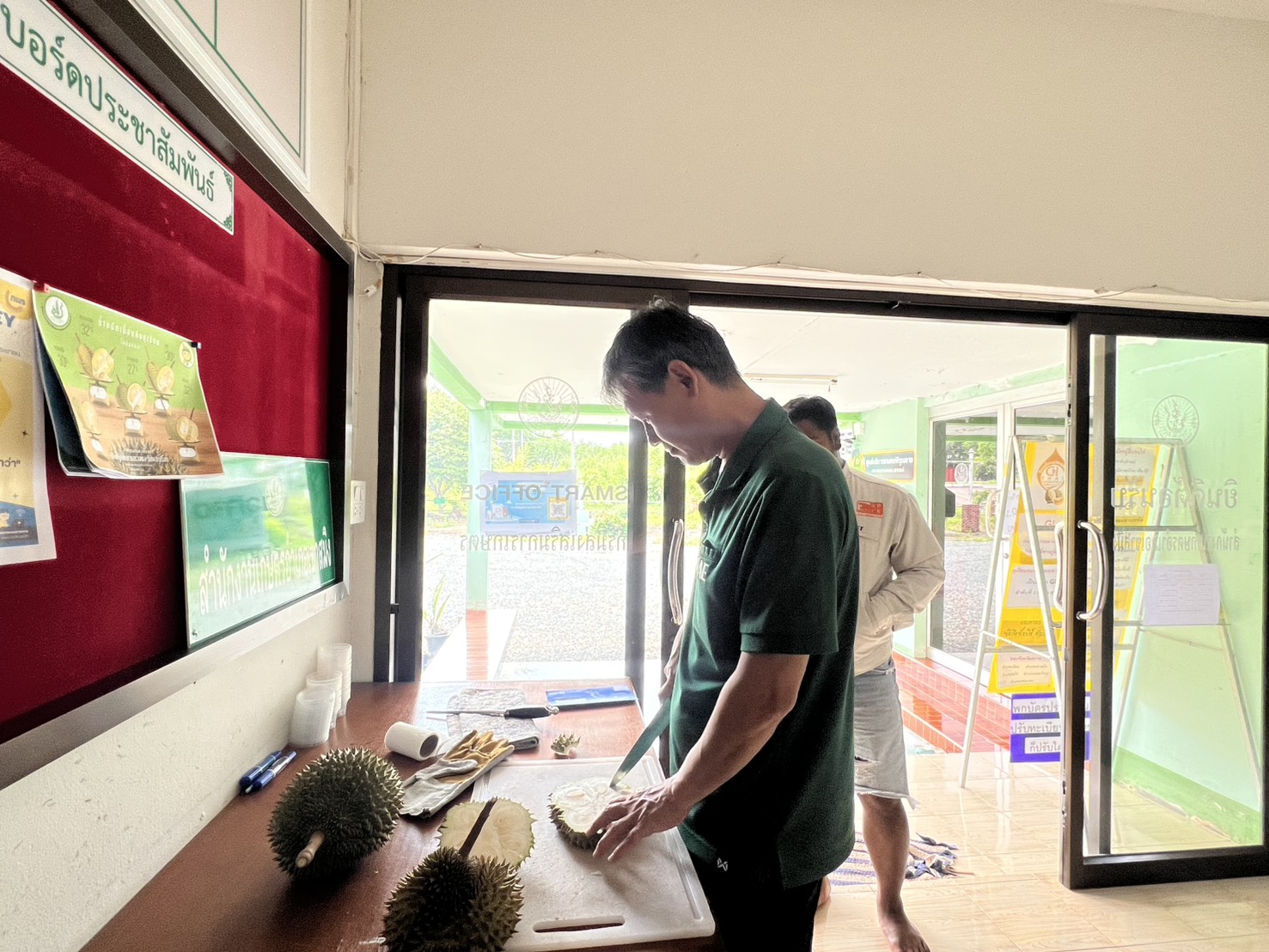 วันพุธที่ 12 มีนาคม 2568 นางชนัญกาญจน์ บัญญวัตวิวัฒน์ นักวิชาการส่งเสริมการเกษตรชำนาญการพิเศษ รักษาราชการแทน เกษตรอำเภอเขาสมิง พร้อมด้วย เจ้าหน้าที่สำนักงานเกษตรอำเภอเขาสมิง ให้บริการตรวจเปอร์เซ็นต์น้ำหนักแห้งในเนื้อทุเรียน โดยมีเกษตรกรนำทุเรียนพันธุ์หมอนทอง ขอรับบริการตรวจเปอร์เซ็นต์น้ำหนักแห้งในเนื้อทุเรียนก่อนตัด จำนวน 1 ตัวอย่าง จากเกษตรกร 1 ราย เพื่อเป็นแนวทางในการเก็บเกี่ยวทุเรียนคุณภาพ สร้างมาตรฐานทุเรียนตราดให้มีคุณภาพ และสร้างความเชื่อมั่นให้กับผู้บริโภค ณ สำนักงานเกษตรอำเภอเขาสมิง จังหวัดตราด