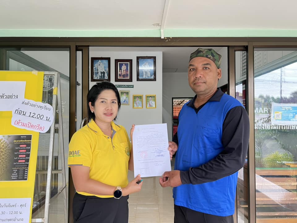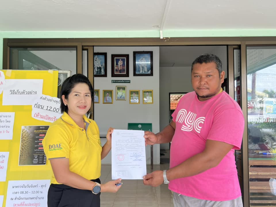 วันจันทร์ที่ 17 มีนาคม 2568 นางชนัญกาญจน์ บัญญวัตวิวัฒน์ นักวิชาการส่งเสริมการเกษตรชำนาญการพิเศษ รักษาราชการแทน เกษตรอำเภอเขาสมิง พร้อมด้วย เจ้าหน้าที่สำนักงานเกษตรอำเภอเขาสมิง ให้บริการตรวจเปอร์เซ็นต์น้ำหนักแห้งในเนื้อทุเรียน โดยมีเกษตรกรนำทุเรียนพันธุ์หมอนทอง ขอรับบริการตรวจเปอร์เซ็นต์น้ำหนักแห้งในเนื้อทุเรียนก่อนตัด จำนวน 14 ตัวอย่าง เพื่อเป็นแนวทางในการเก็บเกี่ยวทุเรียนคุณภาพ สร้างมาตรฐานทุเรียนตราดให้มีคุณภาพ และสร้างความเชื่อมั่นให้กับผู้บริโภค ณ สำนักงานเกษตรอำเภอเขาสมิง จังหวัดตราด