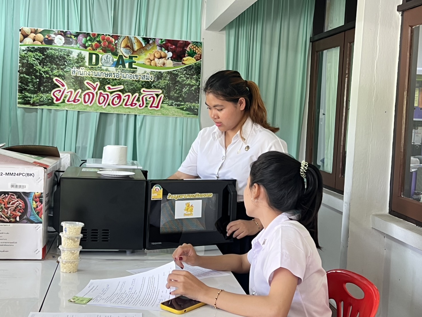 วันอังคารที่ 18 มีนาคม 2568 นางชนัญกาญจน์ บัญญวัตวิวัฒน์ นักวิชาการส่งเสริมการเกษตรชำนาญการพิเศษ รักษาราชการแทน เกษตรอำเภอเขาสมิง พร้อมด้วย เจ้าหน้าที่สำนักงานเกษตรอำเภอเขาสมิง ให้บริการตรวจเปอร์เซ็นต์น้ำหนักแห้งในเนื้อทุเรียน โดยมีเกษตรกรนำทุเรียนพันธุ์หมอนทอง ขอรับบริการตรวจเปอร์เซ็นต์น้ำหนักแห้งในเนื้อทุเรียนก่อนตัด จำนวน 22 ตัวอย่าง เพื่อเป็นแนวทางในการเก็บเกี่ยวทุเรียนคุณภาพ สร้างมาตรฐานทุเรียนตราดให้มีคุณภาพ และสร้างความเชื่อมั่นให้กับผู้บริโภค ณ สำนักงานเกษตรอำเภอเขาสมิง จังหวัดตราด