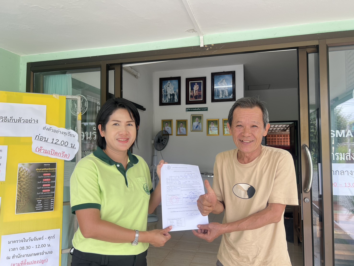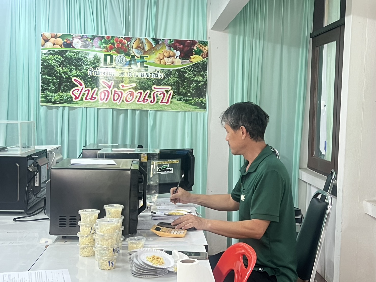 วันพุธที่ 26 มีนาคม 2568 นางชนัญกาญจน์ บัญญวัตวิวัฒน์ นักวิชาการส่งเสริมการเกษตรชำนาญการพิเศษ รักษาราชการแทน เกษตรอำเภอเขาสมิง พร้อมด้วย เจ้าหน้าที่สำนักงานเกษตรอำเภอเขาสมิง ให้บริการตรวจเปอร์เซ็นต์น้ำหนักแห้งในเนื้อทุเรียน โดยมีเกษตรกรนำทุเรียนพันธุ์หมอนทอง และพันธุ์กระดุม ขอรับบริการตรวจเปอร์เซ็นต์น้ำหนักแห้งในเนื้อทุเรียนก่อนตัด จำนวน 25 ตัวอย่าง เพื่อเป็นแนวทางในการเก็บเกี่ยวทุเรียนคุณภาพ สร้างมาตรฐานทุเรียนตราดให้มีคุณภาพ และสร้างความเชื่อมั่นให้กับผู้บริโภค ณ สำนักงานเกษตรอำเภอเขาสมิง จังหวัดตราด
