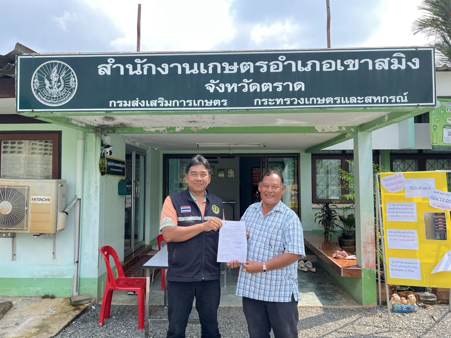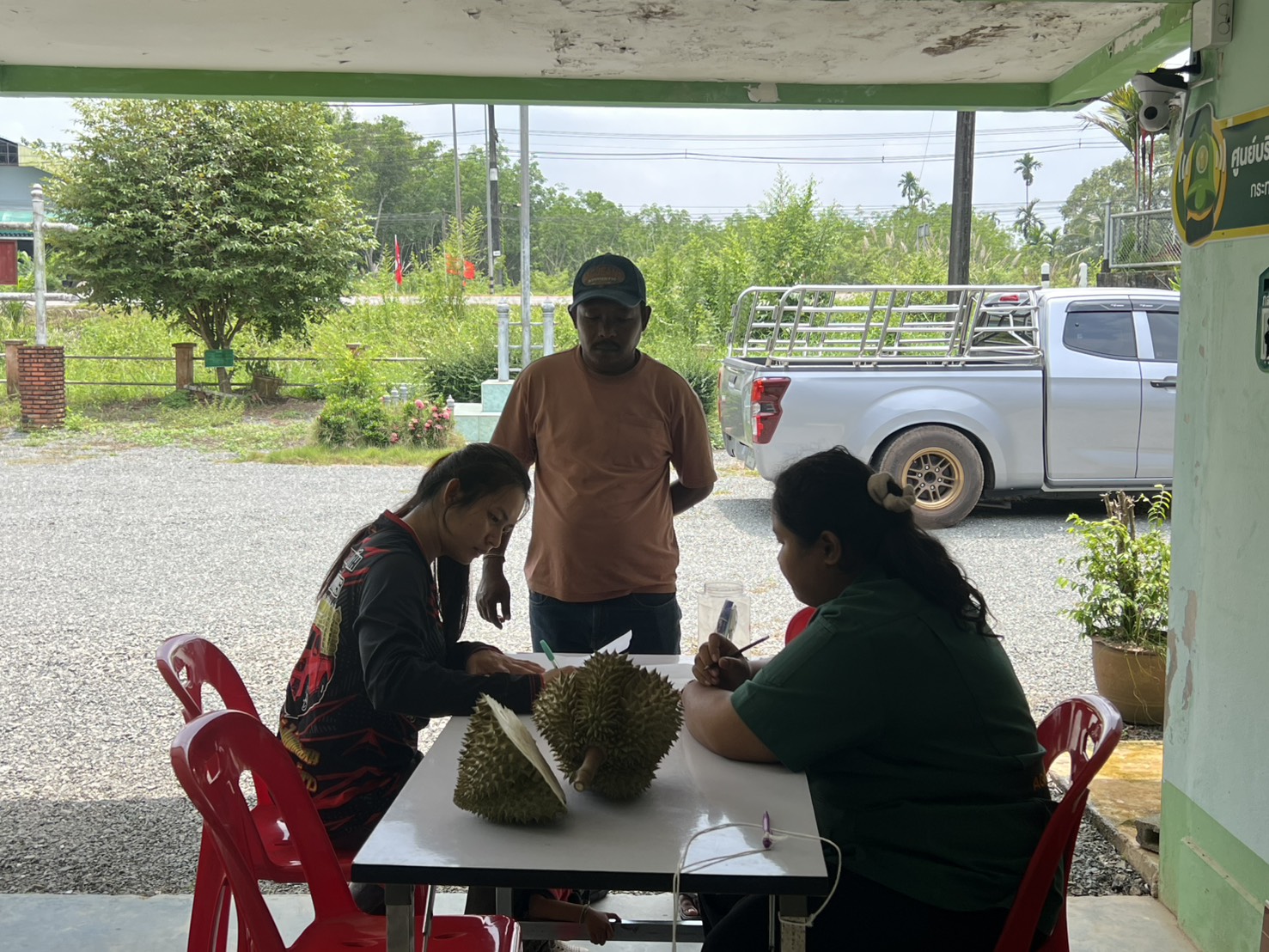 วันพฤหัสบดีที่ 27 มีนาคม 2568 นางชนัญกาญจน์ บัญญวัตวิวัฒน์ นักวิชาการส่งเสริมการเกษตรชำนาญการพิเศษ รักษาราชการแทน เกษตรอำเภอเขาสมิง พร้อมด้วย เจ้าหน้าที่สำนักงานเกษตรอำเภอเขาสมิง ให้บริการตรวจเปอร์เซ็นต์น้ำหนักแห้งในเนื้อทุเรียน โดยมีเกษตรกรนำทุเรียนพันธุ์หมอนทอง และพันธุ์กระดุม ขอรับบริการตรวจเปอร์เซ็นต์น้ำหนักแห้งในเนื้อทุเรียนก่อนตัด จำนวน 22 ตัวอย่าง เพื่อเป็นแนวทางในการเก็บเกี่ยวทุเรียนคุณภาพ สร้างมาตรฐานทุเรียนตราดให้มีคุณภาพ และสร้างความเชื่อมั่นให้กับผู้บริโภค ณ สำนักงานเกษตรอำเภอเขาสมิง จังหวัดตราด