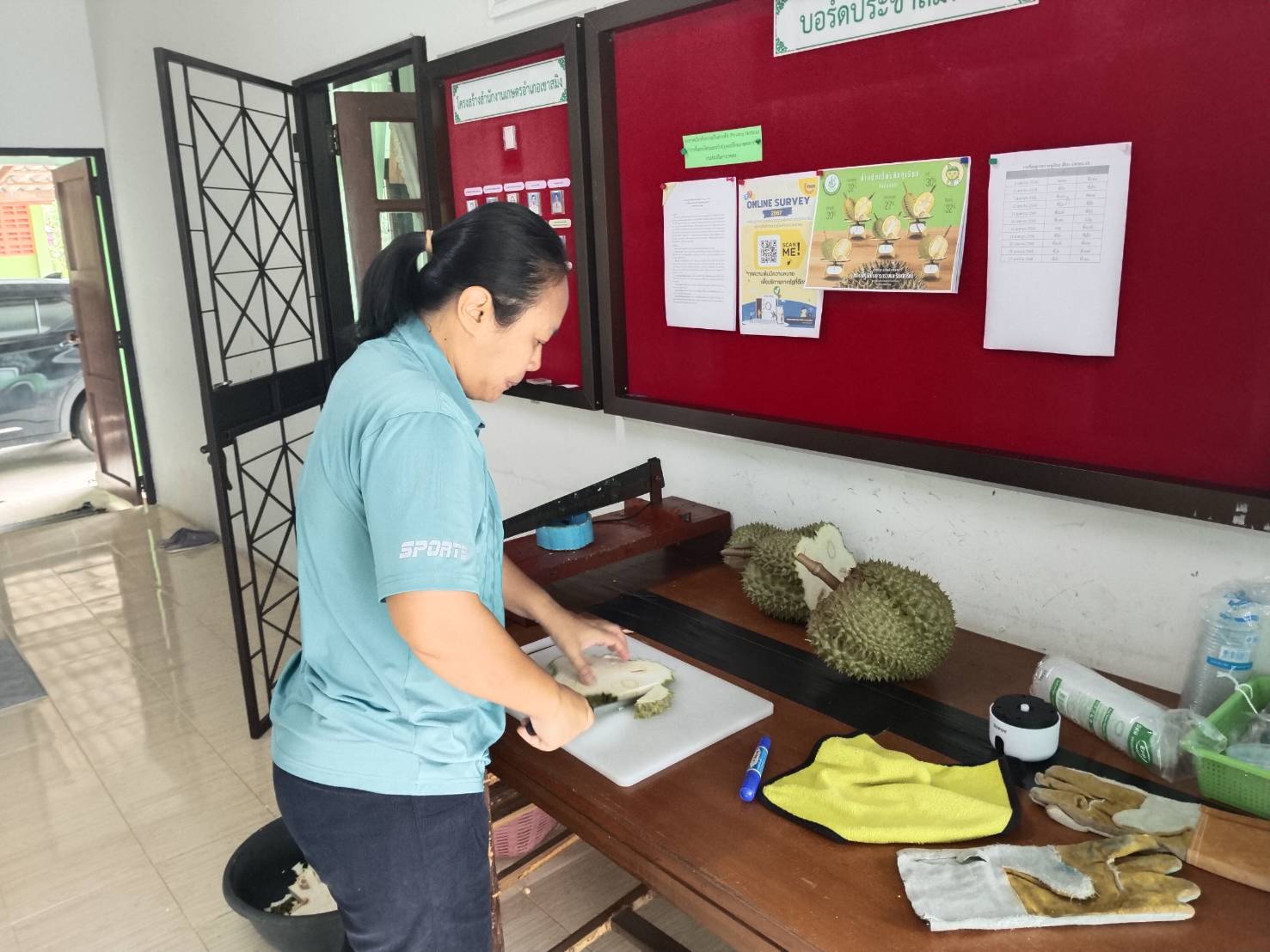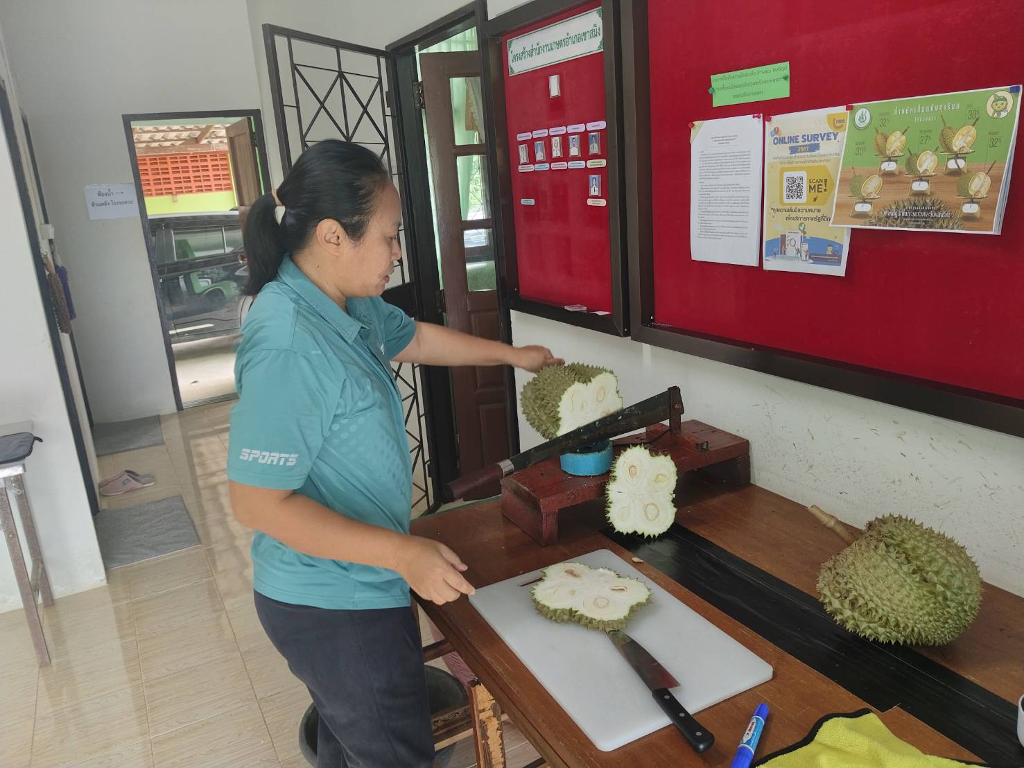 วันพุธที่ 16 เมษายน 2568 นางชนัญกาญจน์ บัญญวัตวิวัฒน์ นักวิชาการส่งเสริมการเกษตรชำนาญการพิเศษ รักษาราชการแทน เกษตรอำเภอเขาสมิง พร้อมด้วย เจ้าหน้าที่สำนักงานเกษตรอำเภอเขาสมิง ให้บริการตรวจเปอร์เซ็นต์น้ำหนักแห้งในเนื้อทุเรียน โดยมีเกษตรกรนำทุเรียนพันธุ์หมอนทอง ขอรับบริการตรวจเปอร์เซ็นต์น้ำหนักแห้งในเนื้อทุเรียนก่อนตัด จำนวน 20 ตัวอย่าง เพื่อเป็นแนวทางในการเก็บเกี่ยวทุเรียนคุณภาพ สร้างมาตรฐานทุเรียนตราดให้มีคุณภาพ และสร้างความเชื่อมั่นให้กับผู้บริโภค พร้อมทั้งสร้างความเข้าใจในการใช้สิทธิ์ การละเมิดการใช้สิทธิ์ การป้องกันการสวมสิทธิ์ ใบรับรอง GAP แก่เกษตรกร ณ สำนักงานเกษตรอำเภอเขาสมิง จังหวัดตราด