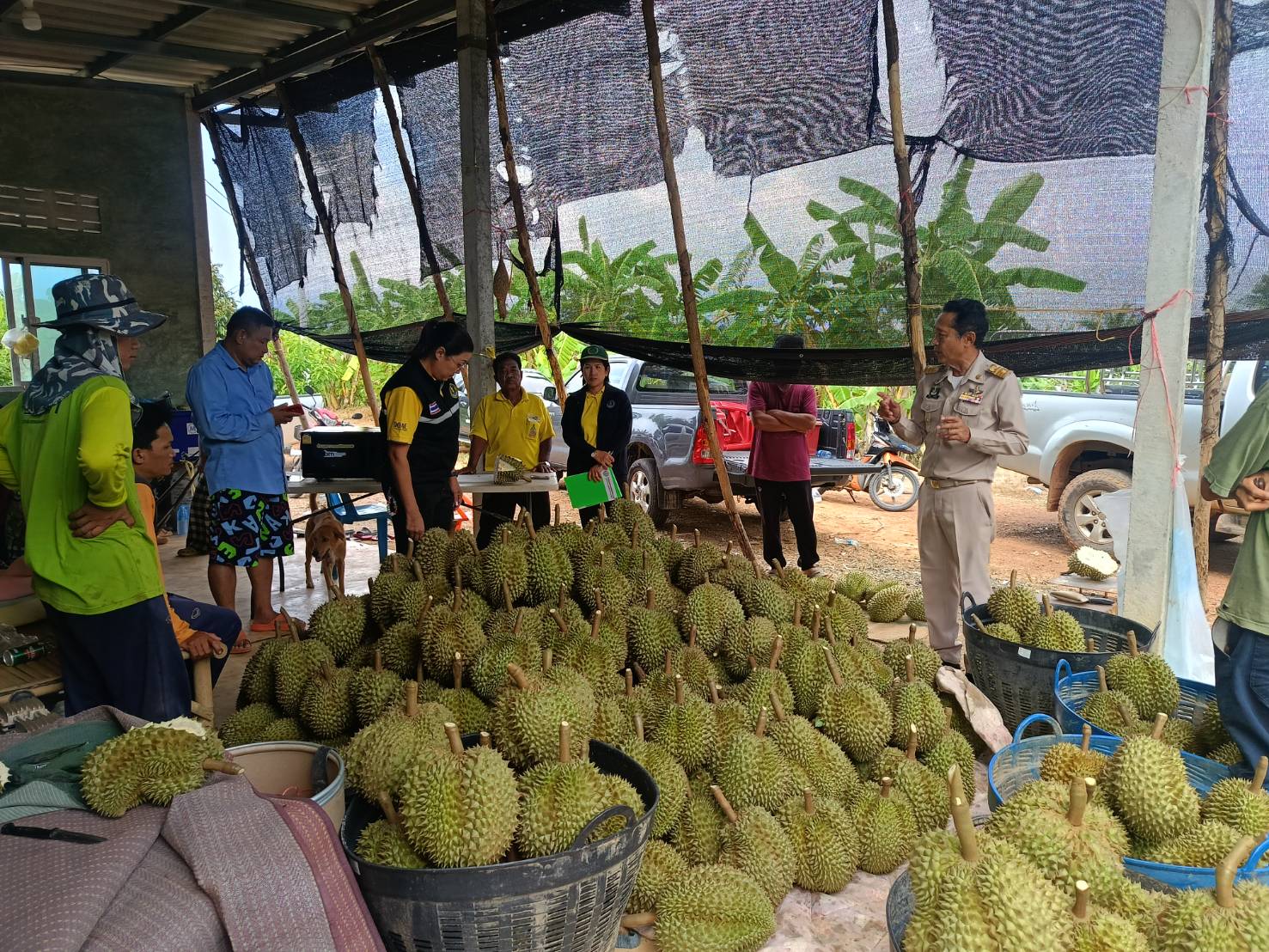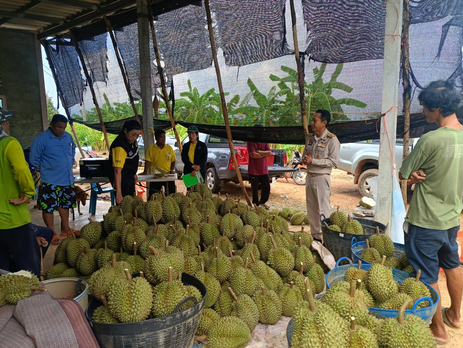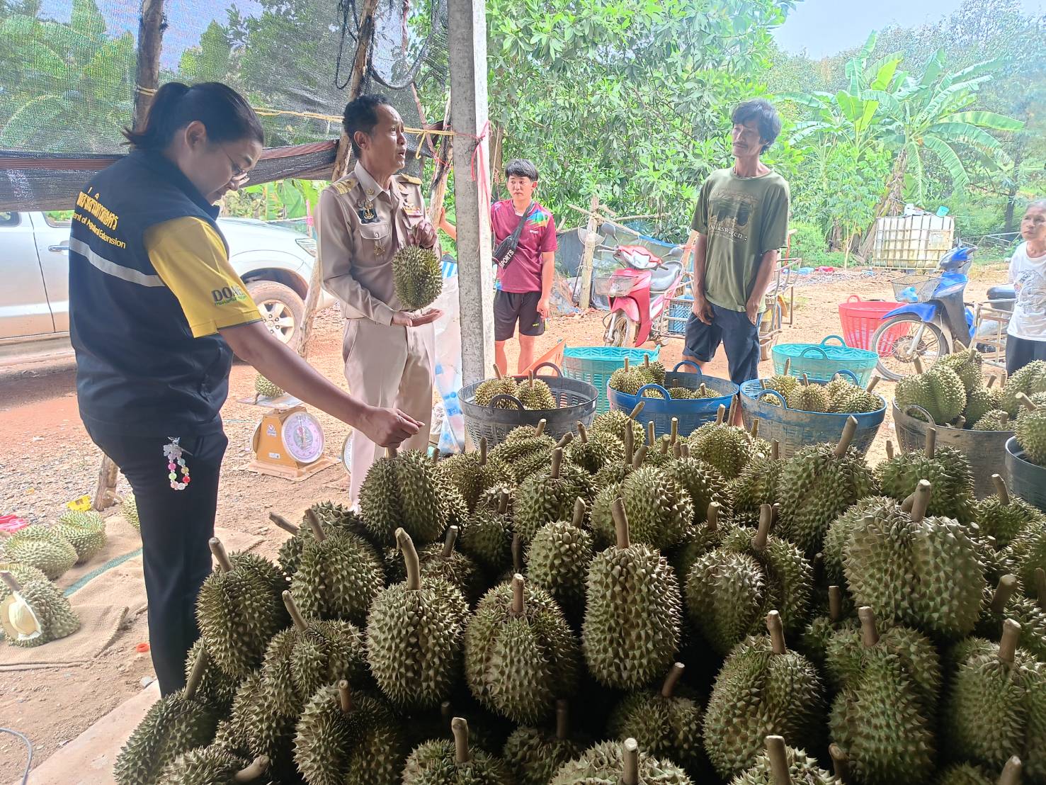 วันที่ 21 เมษายน 2568 นายวินัย ขยันยิ่ง เกษตรจังหวัดตราด พร้อมด้วย นหัวหน้ากลุ่มฯและเกษตรอำเภอเขาสมิง ร่วมกับผู้นำชุมชน ลงพื้นที่ ตรวจสอบ เกษตรกร โดย ให้คำแนะนำการเก็บเกี่ยวผลผลิตทุเรียน ตามมาตรการ “ทุเรียนตราด ตรวจก่อนตัด สร้างมาตรฐานทุเรียน” ภายใต้การดำเนินการป้องกันทุเรียนด้อยคุณภาพออกสู่ตลาด จังหวัดตราด ณ พื้นที่ตำบลสะตอ อำเภอเขาสมิง จังหวัดตราด พบ ว่ามี การตัดทุเรียนด้อยคุณภาพ(ทุเรียนอ่อน) บางส่วน จึงได้แจ้งให้เกษตรกรหยุดการตัดและ คัดทุเรียนที่ด้อยคุณภาพ(ทุเรียนอ่อน )ออก ทำสัญลักษณ์โดยการพ่นสีแดงเพื่อป้องกันทุเรียนด้อยคุณภาพ(ทุเรียนอ่อน )ออกสู่ท้องตลาดจังหวัดตราด