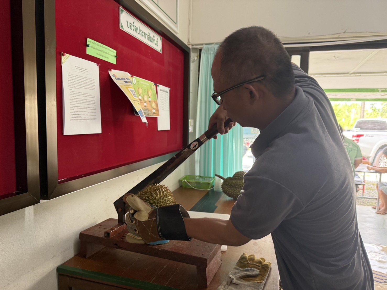 วันพุธที่ 23 เมษายน 2568 นางชนัญกาญจน์ บัญญวัตวิวัฒน์ นักวิชาการส่งเสริมการเกษตรชำนาญการพิเศษ รักษาราชการแทน เกษตรอำเภอเขาสมิง พร้อมด้วย เจ้าหน้าที่สำนักงานเกษตรอำเภอเขาสมิง ให้บริการตรวจเปอร์เซ็นต์น้ำหนักแห้งในเนื้อทุเรียน โดยมีเกษตรกรนำทุเรียนขอรับบริการตรวจเปอร์เซ็นต์น้ำหนักแห้งในเนื้อทุเรียนก่อนตัด จำนวน 97 ตัวอย่าง เพื่อเป็นแนวทางในการเก็บเกี่ยวทุเรียนคุณภาพ สร้างมาตรฐานทุเรียนตราดให้มีคุณภาพ และสร้างความเชื่อมั่นให้กับผู้บริโภค พร้อมทั้งสร้างความเข้าใจในการใช้สิทธิ์ การละเมิดการใช้สิทธิ์ การป้องกันการสวมสิทธิ์ใบรับรอง GAP แก่เกษตรกร ณ สำนักงานเกษตรอำเภอเขาสมิง จังหวัดตราด