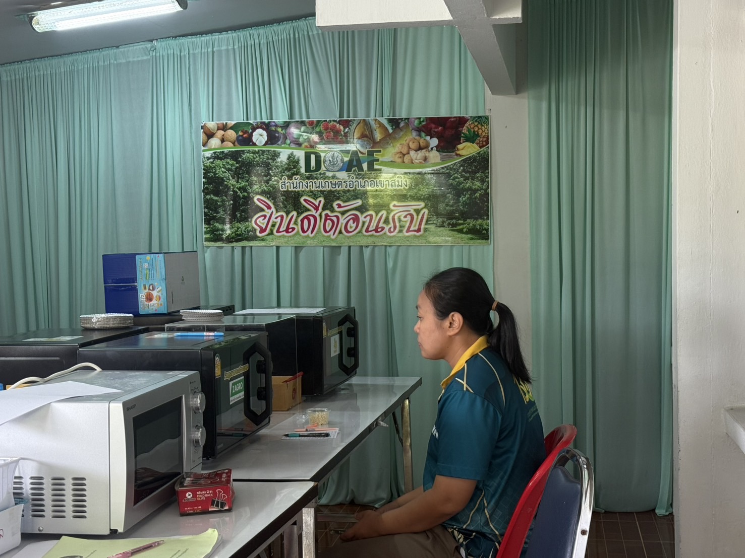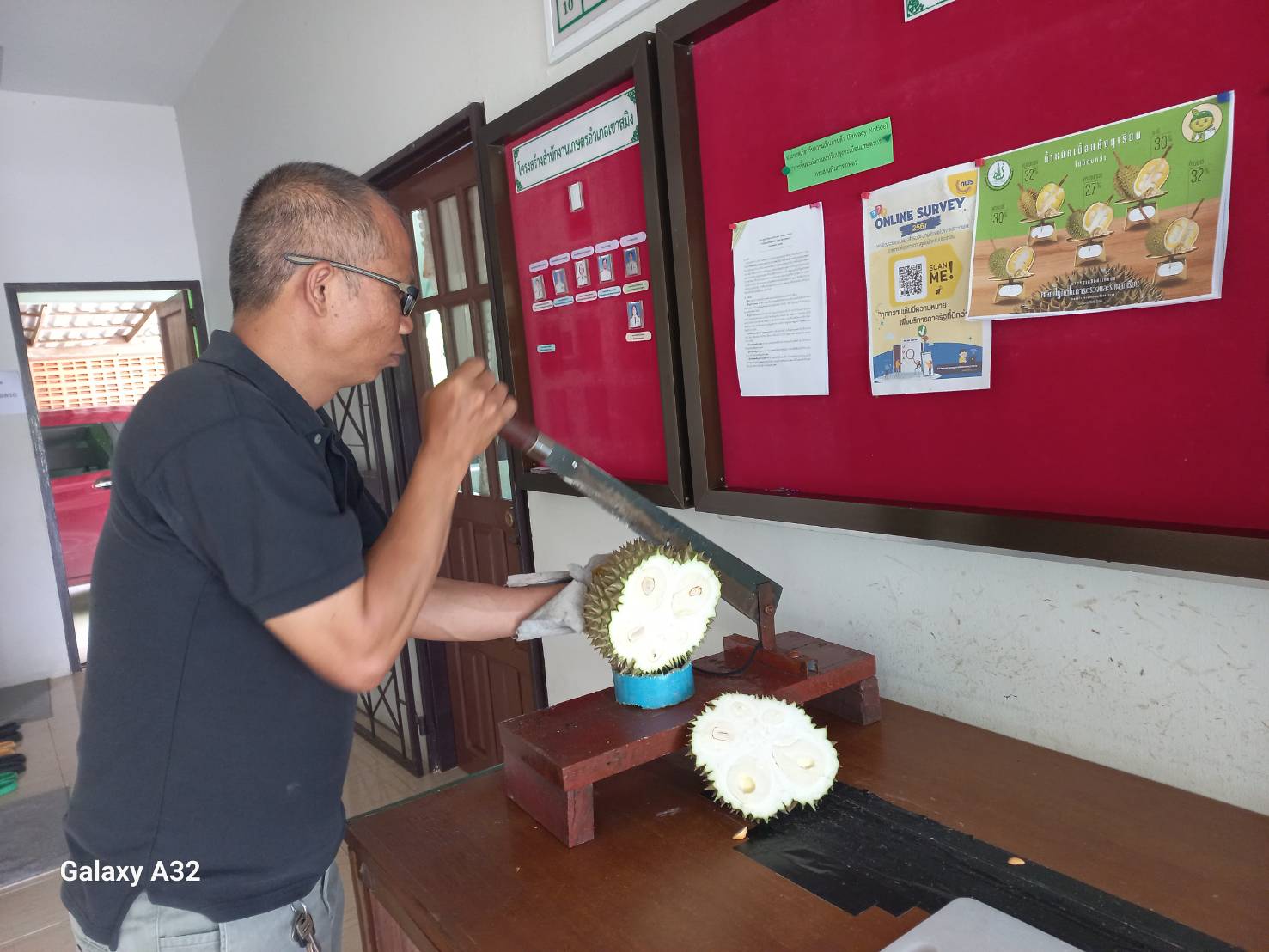 วันพุธที่ 14 พฤษภาคม 2568 นางชนัญกาญจน์ บัญญวัตวิวัฒน์ นักวิชาการส่งเสริมการเกษตรชำนาญการพิเศษ รักษาราชการแทน เกษตรอำเภอเขาสมิง พร้อมด้วย เจ้าหน้าที่สำนักงานเกษตรอำเภอเขาสมิง ให้บริการตรวจเปอร์เซ็นต์น้ำหนักแห้งในเนื้อทุเรียน โดยมีเกษตรกรนำทุเรียนขอรับบริการตรวจเปอร์เซ็นต์น้ำหนักแห้งในเนื้อทุเรียนก่อนตัด จำนวน 2 ตัวอย่าง เพื่อเป็นแนวทางในการเก็บเกี่ยวทุเรียนคุณภาพ สร้างมาตรฐานทุเรียนตราดให้มีคุณภาพ และสร้างความเชื่อมั่นให้กับผู้บริโภค พร้อมทั้งสร้างความเข้าใจในการใช้สิทธิ์ การละเมิดการใช้สิทธิ์ การป้องกันการสวมสิทธิ์ใบรับรอง GAP แก่เกษตรกร ณ สำนักงานเกษตรอำเภอเขาสมิง จังหวัดตราด