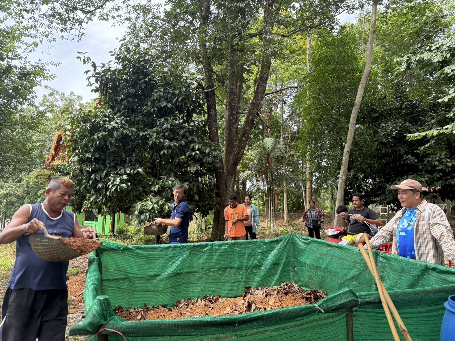 วันพฤหัสบดีที่ 29 พฤษภาคม 2568 นางชนัญกาญจน์ บัญญวัตวิวัฒน์ เกษตรอำเภอเขาสมิง มอบหมายให้ เจ้าหน้าที่สำนักงานเกษตรอำเภอเขาสมิง ลงพื้นที่เตรียมความพร้อมทำกิจกรรมทำเเปลงปุ๋ยหมักจากเศษใบไม้ เพื่อขจัดการเผาใบไม้ในครัวเรือน ตามเเนวคิด “1 วัด 1 เเปลงปุ๋ยหมัก” ร่วมกับหน่วยงานในพื้นที่ เพื่อจัดเตรียมสถานที่ให้พร้อม และอำนวยความสะดวกสำหรับกิจกรรมทำแปลงปุ๋ยหมักจากเอาเศษขยะอินทรีย์ ตามแนวของ BCG model และลดการเผาในพื้นที่การเกษตร ทั้งนี้ได้รับความอนุเคราะห์จาก นายอภินันท์ สว่างไสว นายกองค์การบริหารส่วนตำบลแสนตุ้ง สนับสนุนหน้าดิน และเจ้าหน้าที่ร่วมเตรียมการ ณ วัดท่าหาด ตำบลแสนตุ้ง อำเภอเขาสมิง จังหวัดตราด