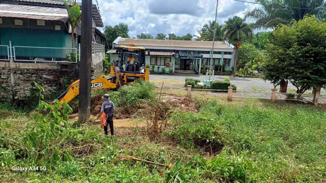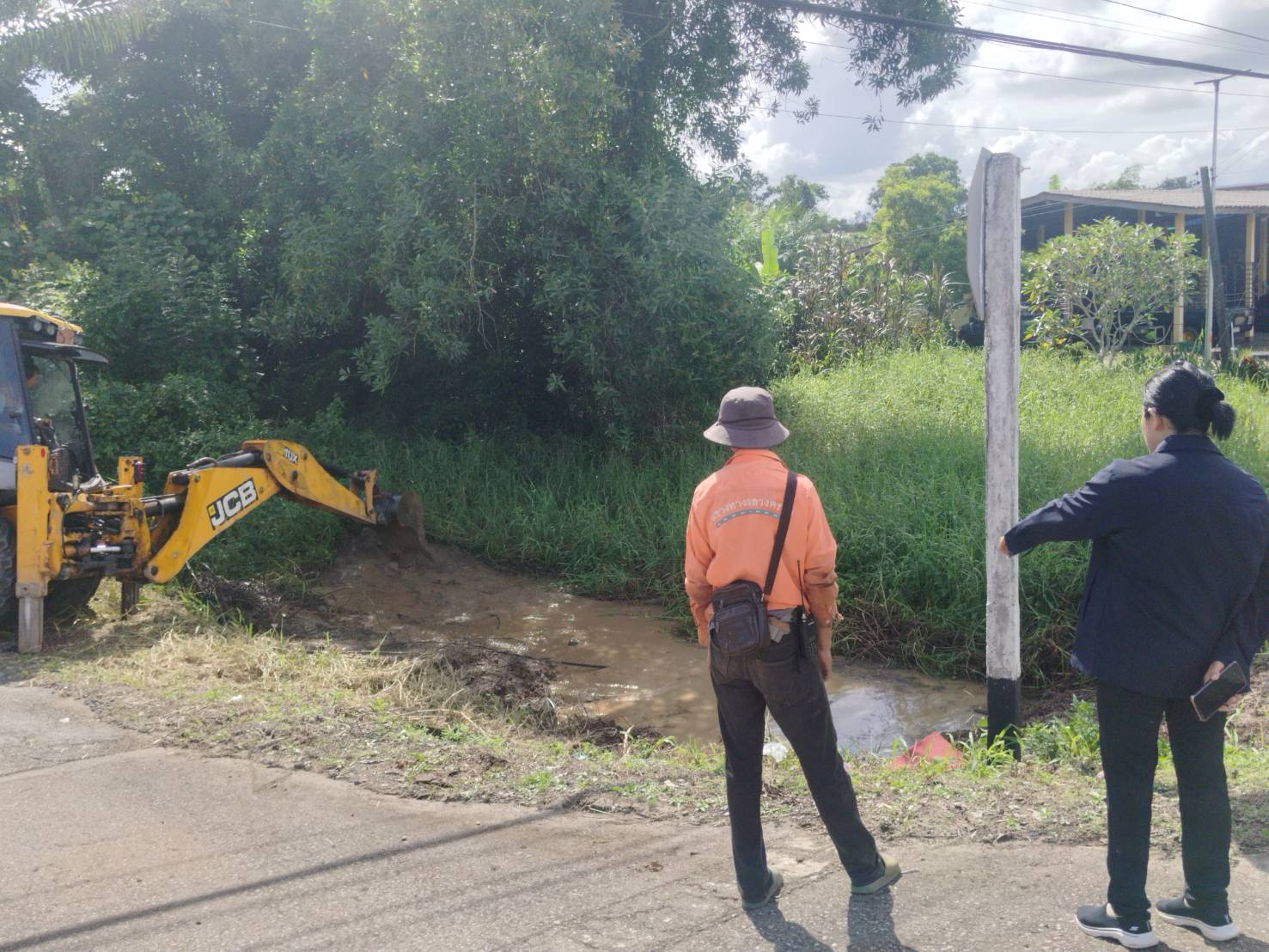 วันอังคารที่ 17 มิถุนายน 2568 นางชนัญกาญจน์ บัญญวัตวิวัฒน์ เกษตรอำเภอเขาสมิง ปรับปรุงภูมิทัศน์ ขอความอนุเคราะห์แขวงทางหลวงตราด ดำเนินการขุดลอกร่องระบายน้ำบริเวณหน้าสำนักงาน จัดการวัชพืชและดินเลนทับถมขวางทางระบายน้ำ เพื่อเตรียมการป้องกันและบรรเทาความเสียหายในช่วงฤดูฝน ทั้งนี้ รองนายกเทศมนตรีตำบลเขาสมิง และผู้อำนวยการกองช่างเทศบาลตำบลเขาสมิง ร่วมลงพื้นที่ติดตามและหาแนวทางแก้ไขในระยะยาว เพื่อกำหนดแผนในการดำเนินการป้องกันอุทกภัยของอำเภอเขาสมิงต่อไป