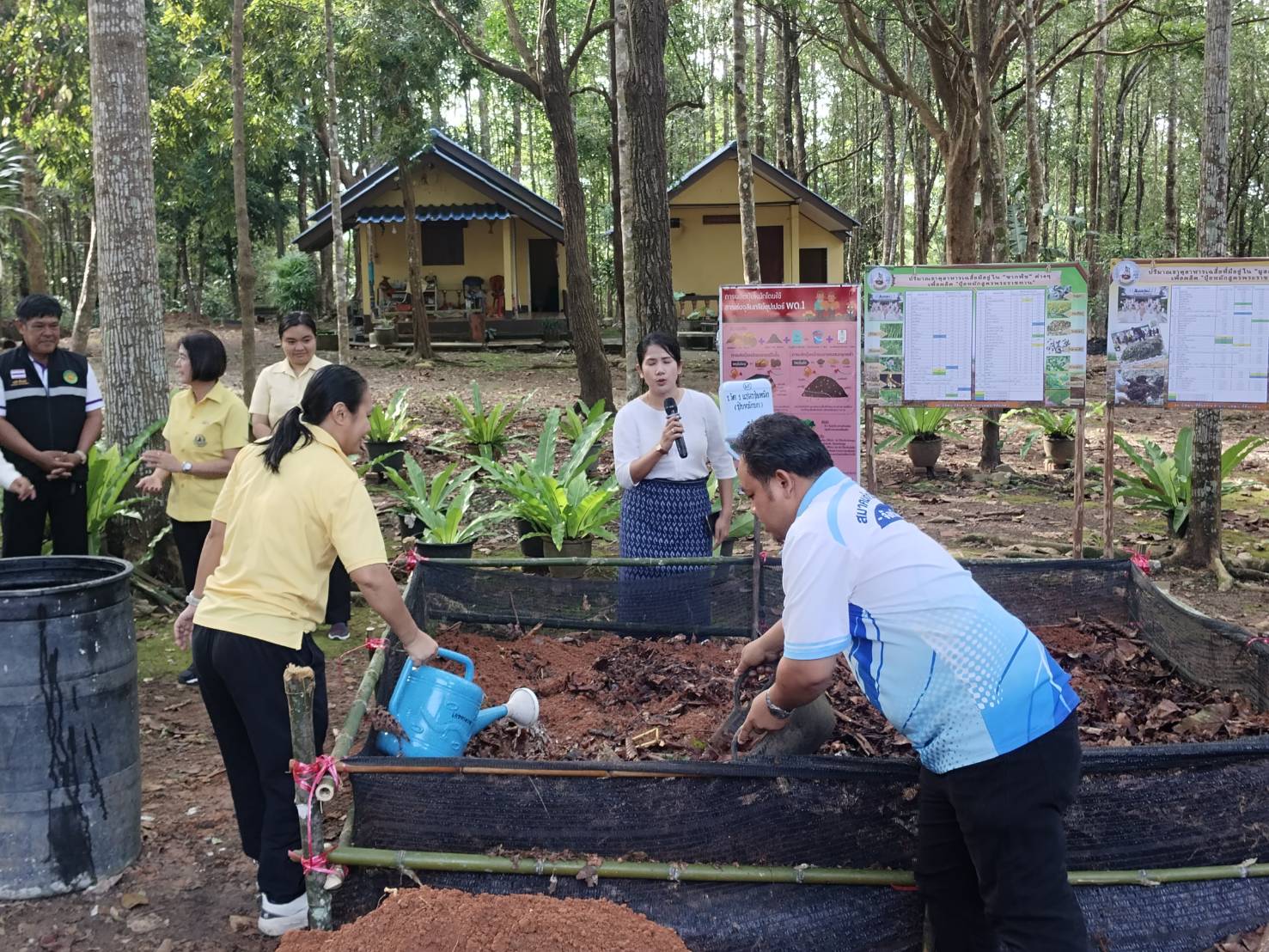 วันพุธที่ 18 มิถุนายน 2568 นางชนัญกาญจน์ บัญญวัตวิวัฒน์ เกษตรอำเภอเขาสมิง พร้อมด้วย เจ้าหน้าที่สำนักงานเกษตรอำเภอเขาสมิง ร่วมกิจกรรม”ผู้ว่าฯ พาตักบาตร สืบสานพระพุทธศาสนา รักษาศีล 5″ เป็นการบูรณาการโครงการร่วมกันระหว่างวัด หน่วยงานที่เกี่ยวข้องทั้งภาครัฐและ เอกชน ในการส่งเสริมวัด ให้เป็นที่สัปปายะ เป็นแหล่งเรียนรู้ทางพระพุทธศาสนา เป็นการส่งเสริมให้คนตราดรักษาสุขภาพกาย และสุขภาพจิตในการป้องกันและแก้ไขปัญหาทุจริตและประพฤติมิชอบ และกิจกรรม 1 วัด 1 กองปุ๋ย เพื่อทำแปลงปุ๋ยหมักจากเศษใบไม้แห้ง ตามแนวของ BCG model และลดการเผาในพื้นที่การเกษตร ณ วัดบ้านโป่ง หมู่ที่ 1 ตำบลวังตะเคียน อำเภอเขาสมิง จังหวัดตราด