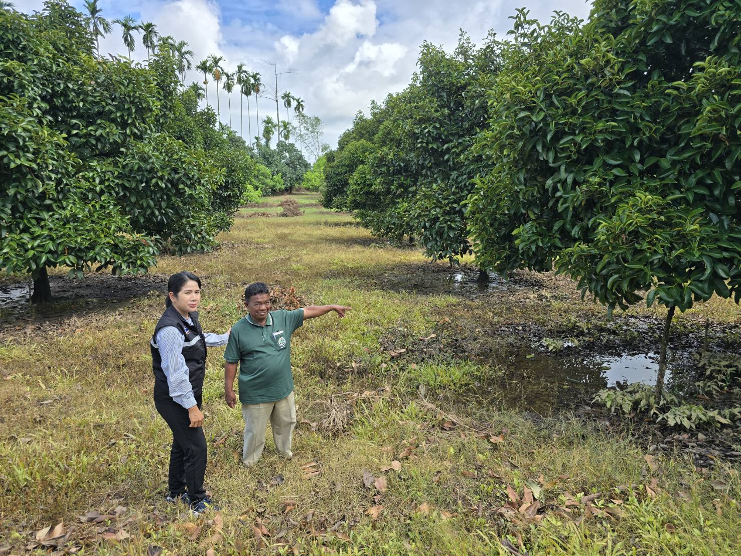 วันพุธที่ 20 สิงหาคม 2568 นางชนัญกาญจน์ บัญญวัตวิวัฒน์ เกษตรอำเภอเขาสมิง พร้อมด้วย เจ้าหน้าที่สำนักงานเกษตรอำเภอเขาสมิง ลงพื้นที่ร่วมกับอาสาสมัครเกษตรหมู่บ้าน ติดตามสถานการณ์หลังน้ำลดจากฝนตกชุกเกิดน้ำรอการระบายท่วมขังพื้นที่การเกษตรรวม 2 วัน เพื่อประเมินเตรียมการรับมือและหาแนวทางการให้ความช่วยเหลือตามระเบียบ หลักเกณฑ์กำหนด รวมทั้งแนวทางฟื้นฟูหากมีอุทกภัยเกิดซ้ำขึ้นอีก ณ พื้นที่ตำบลสะตอ อำเภอเขาสมิง จังหวัดตราด