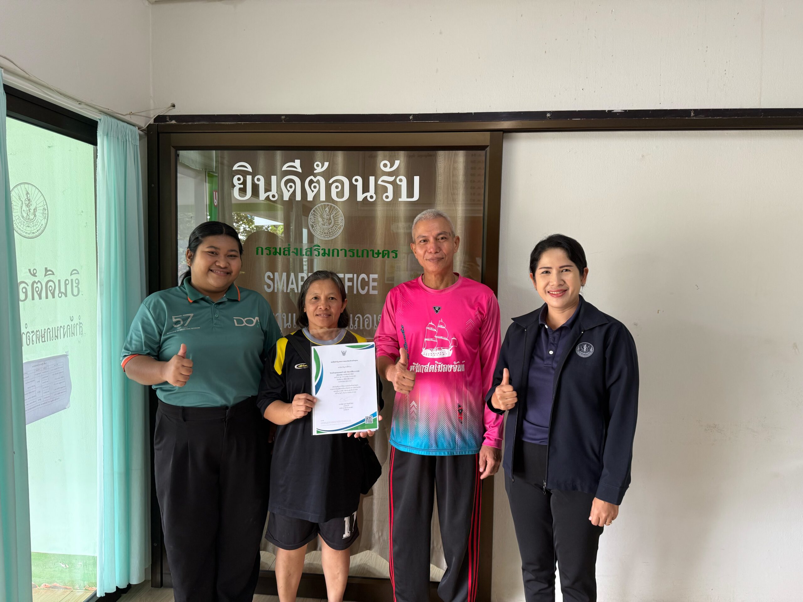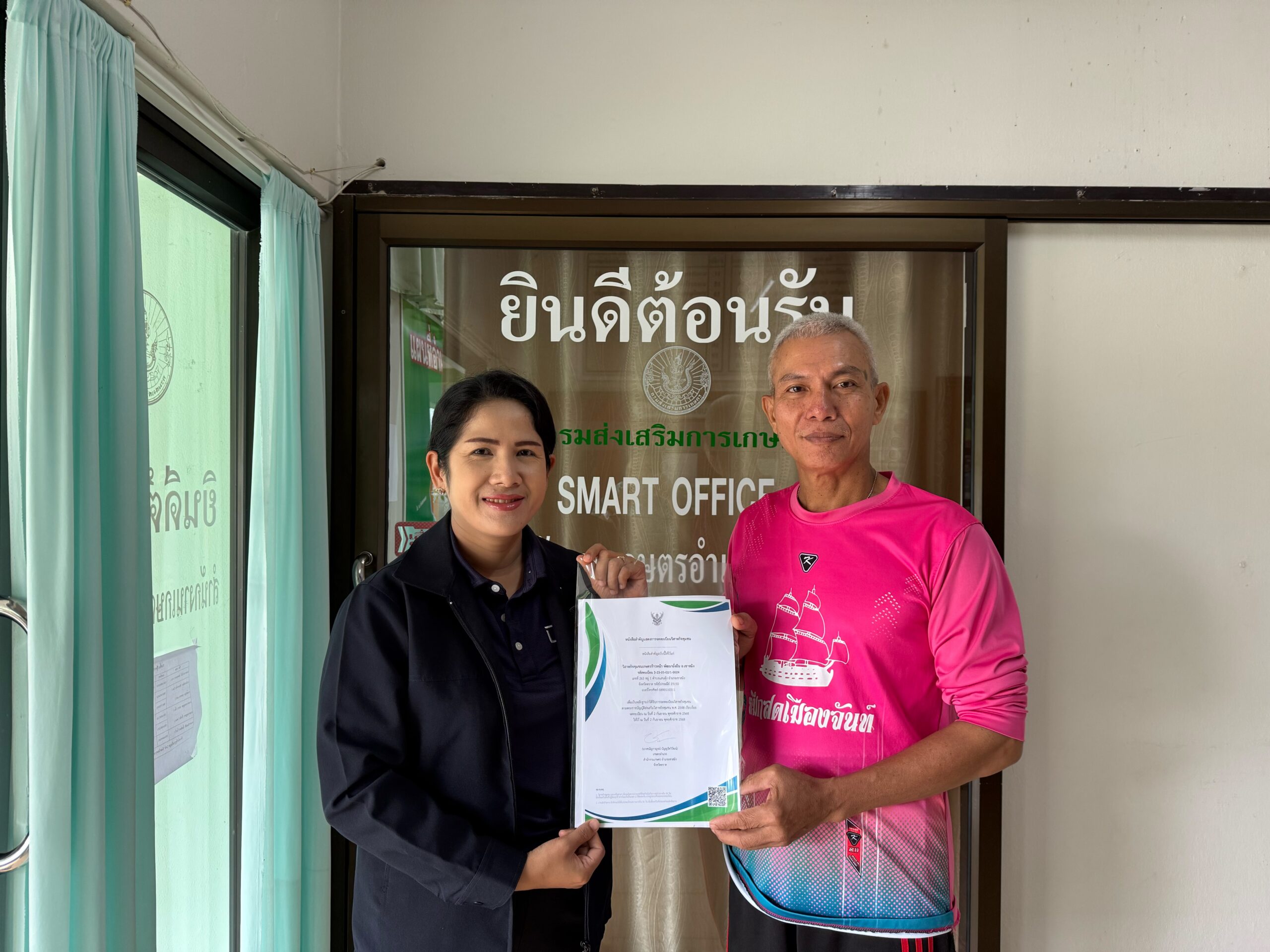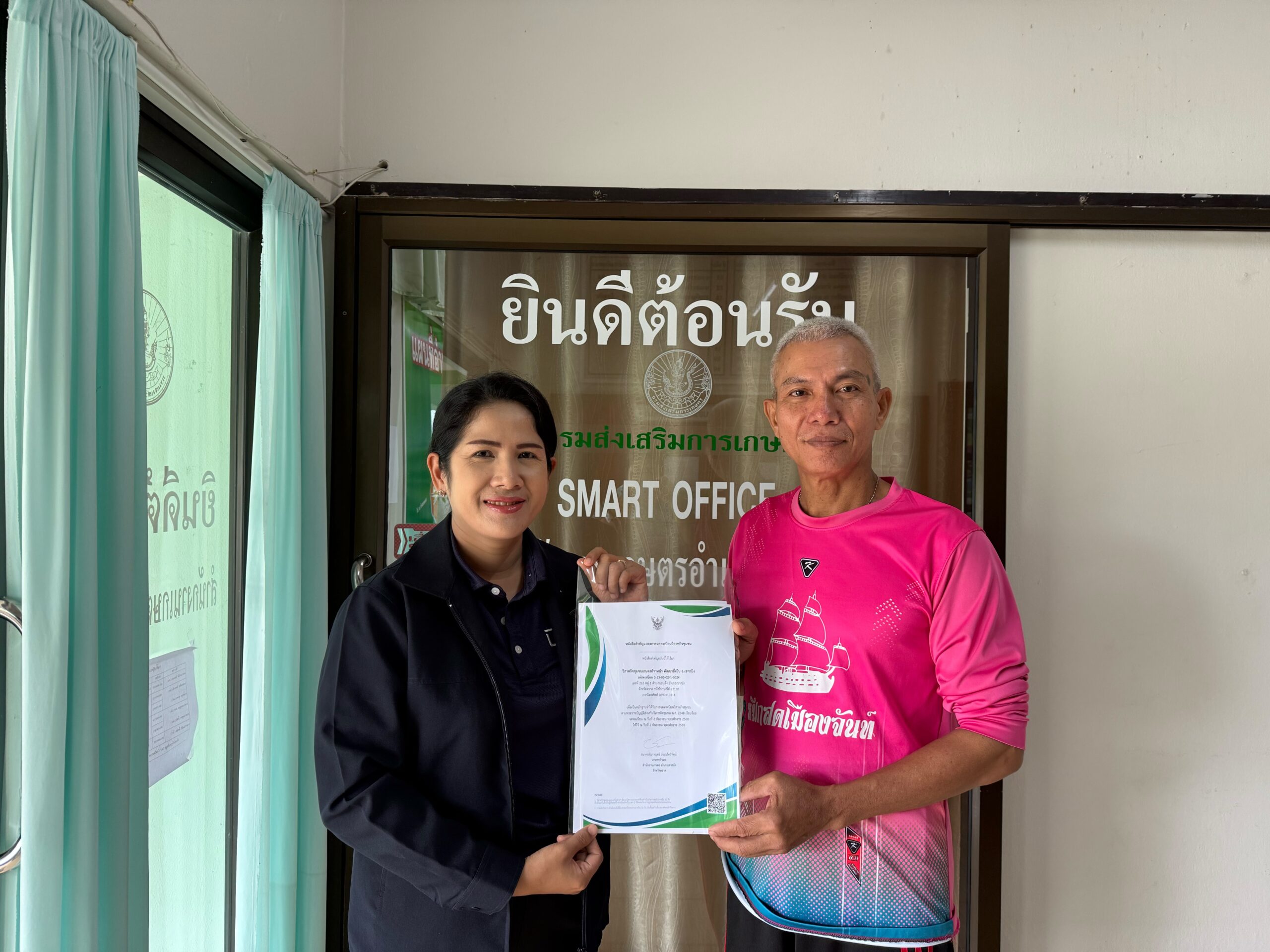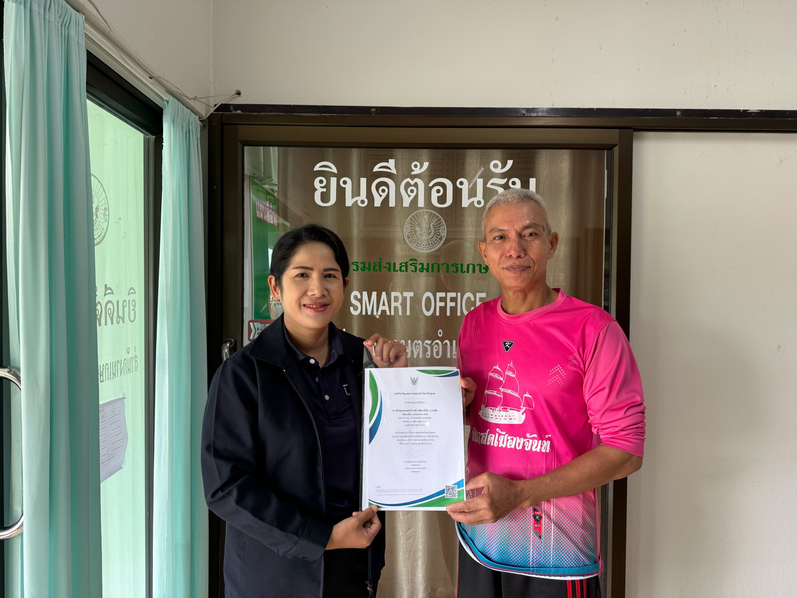 วันพฤหัสบดีที่ 4 กันยายน 2568 นางชนัญกาญจน์ บัญญวัตวิวัฒน์ เกษตรอำเภอเขาสมิง พร้อมด้วย เจ้าหน้าที่สำนักงานเกษตรอำเภอเขาสมิง มอบหนังสือสําคัญแสดงการจดทะเบียนวิสาหกิจชุมชนเกษตรกรก้าวหน้า พัฒนายั่งยืน อ.เขาสมิง ตำบลแสนตุ้ง อำเภอเขาสมิง จังหวัดตราด ณ สำนักงานอำเภอเขาสมิง จังหวัดตราด