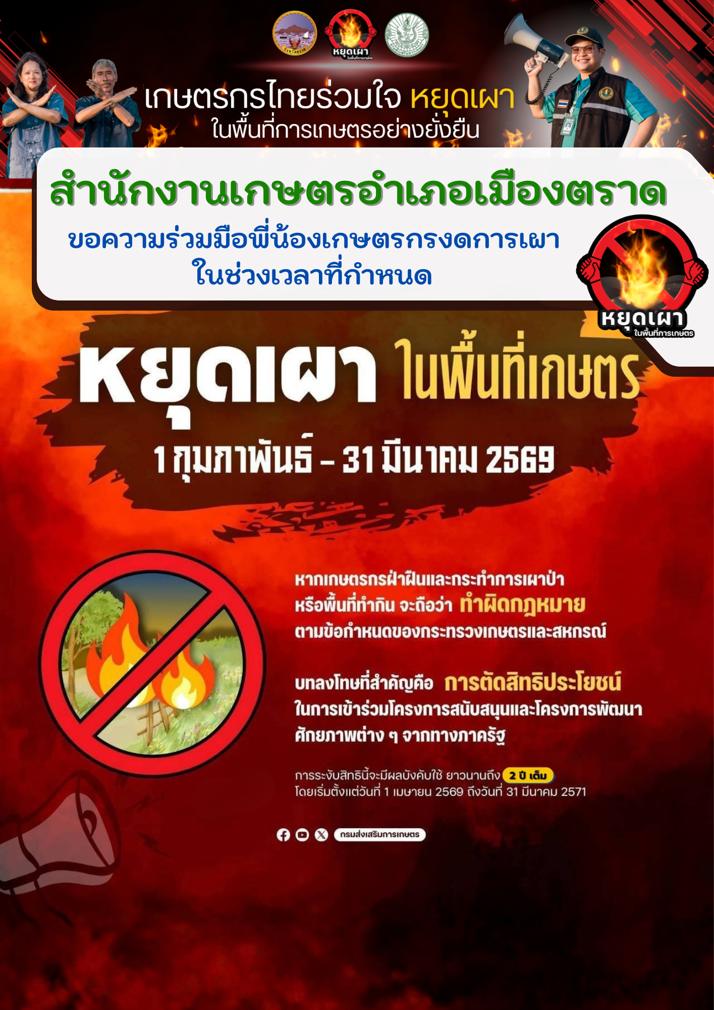 มาตรการห้ามเผาไร่ นา ขยะ และการเผาในที่โล่งทุกประเภท โดยเด็ดขาดในพื้นที่จังหวัดตราดmueangtrat21 พฤษภาคม 2024
