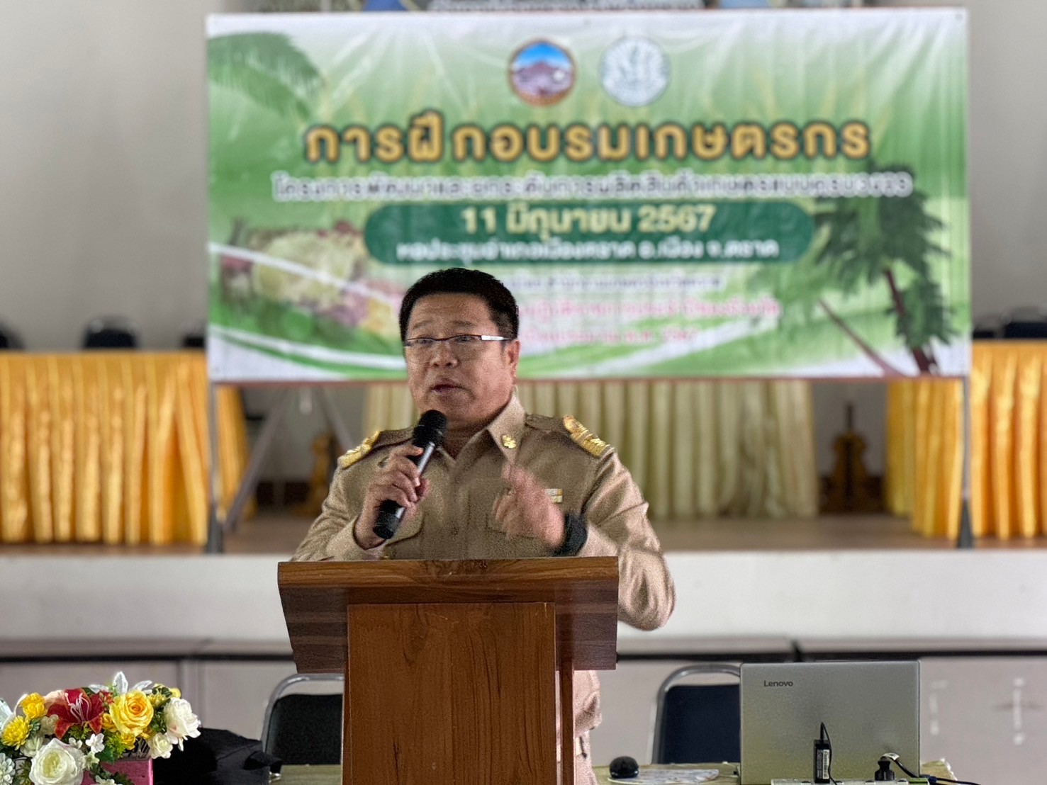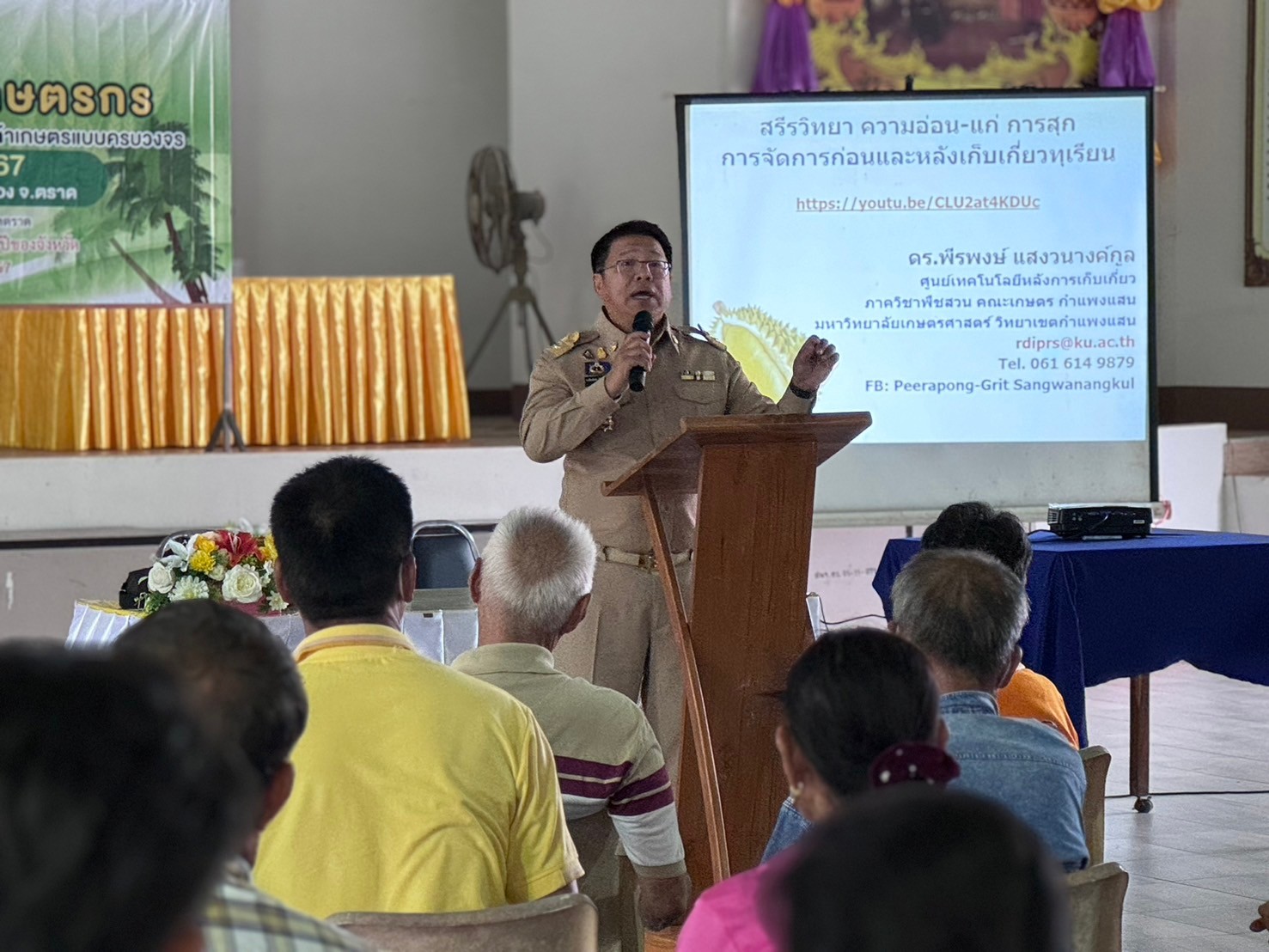 วันที่ 11 มิถุนายน 2567 นางสาวมรกต สุดประเสริฐ เกษตรอำเภอเมืองตราด พร้อมด้วยเจ้าหน้าที่ฯ ร่วมกับสำนักงานเกษตรจังหวัดตราด จัดการอบรมโครงการพัฒนาและยกระดับการผลิตสินค้าเกษตรแบบครบวงจร ประจำปีงบประมาณ 2567 กิจกรรมส่งเสริมการพัฒนาศักยภาพเกษตรกรผู้ปลูกทุเรียนจังหวัดตราด อบรมถ่ายทอดความรู้ด้านวิทยาการก่อนการเก็บเกี่ยวและหลังการเก็บเกี่ยว เพื่อเสริมสร้างและพัฒนาความรู้ให้กับเกษตรกรผู้ปลูกทุเรียน โดยในการจัดการอบรมในครั้งนี้ มีเกษตรกรเข้าร่วมอบรม จำนวน 130 ราย ณ หอประชุมที่ว่าการอำเภอเมืองตราด อ.เมือง จ.ตราด