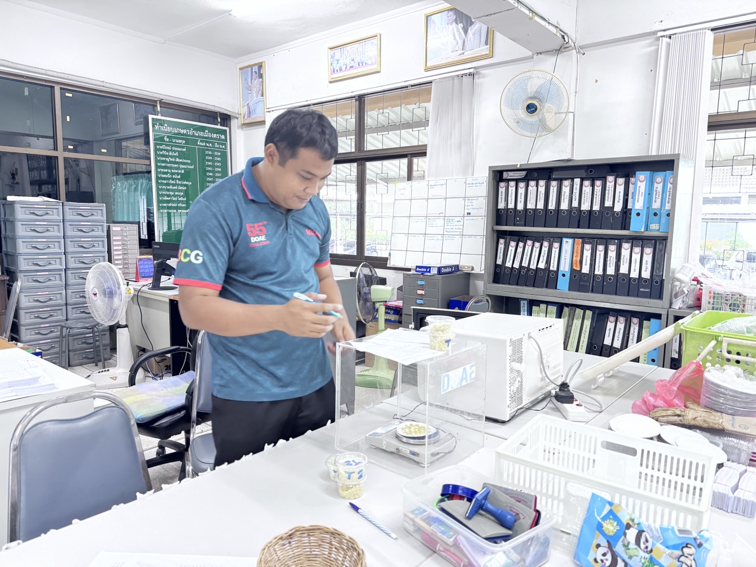วันที่ 28 กุมภาพันธ์ 2568 นางสาวมรกต สุดประเสริฐ เกษตรอำเภอเมืองตราด มอบหมายให้เจ้าหน้าที่สำนักงานเกษตรอำเภอเมืองตราด ให้บริการตรวจเปอร์เซ็นต์น้ำหนักแห้งในเนื้อทุเรียน ตามมาตรการ “ทุเรียนตราด ตรวจก่อนตัด สร้างมาตรฐานทุเรียนตราดให้มีคุณภาพ” ภายใต้การดำเนินการป้องกันทุเรียนด้อยคุณภาพออกสู่ตลาด จังหวัดตราด ซึ่งมีเกษตรกรขอรับบริการตรวจเปอร์เซ็นต์น้ำหนักแห้งในเนื้อทุเรียนก่อนตัดโดยนำทุเรียนพันธุ์กระดุม จำนวน 2 ตัวอย่าง หมอนทอง จำนวน 2 ตัวอย่าง และชะนี จำนวน 1 ตัวอย่าง รวมทั้งหมด 5 ตัวอย่าง จากเกษตรกร 4 ราย เพื่อเป็นแนวทางในการเก็บเกี่ยวทุเรียนคุณภาพ ณ สำนักงานเกษตรอำเภอเมืองตราด อำเภอเมือง จังหวัดตราด