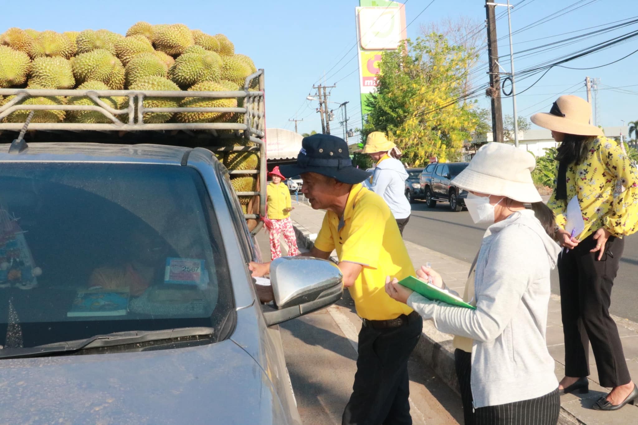 วันที่ 29 เมษายน 2567 สำนักงานเกษตรจังหวัดตราด นำโดย นายวินัย ขยันยิ่ง เกษตรจังหวัดตราด พร้อมด้วย หัวหน้ากลุ่ม และเจ้าหน้าที่สำนักงานเกษตรจังหวัดตราด สำนักงานเกษตรอำเภอในจังหวัดตราด ตั้งจุดสกัดเพื่อป้องกันทุเรียนด้อยคุณภาพ (ทุเรียนอ่อน) ออกสู่ตลาดจังหวัดตราด โดยร่วมกับชุดปฏิบัติการเฉพาะกิจป้องกันและแก้ไขปัญหาทุเรียนด้อยคุณภาพ (ทุเรียนอ่อน) ออกสู่ตลาด ทหาร ตำรวจและที่ว่าการอำเภอเขาสมิง จากการตั้งจุดสกัดเพื่อป้องกันทุเรียนด้อยคุณภาพ เจ้าหน้าที่ได้สุ่มตรวจตัวอย่างทุเรียนและเก็บข้อมูลการเก็บเกี่ยว พร้อมชี้แจงมาตรการการป้องกันทุเรียนด้อยคุณภาพ (ทุเรียนอ่อน) ออกสู่ตลาด จังหวัดตราดให้กับผู้รับซื้อทุเรียนรับทราบ โดยได้รับความร่วมมือเป็นอย่างดีจากผู้รับซื้อทุเรียน ซึ่งในวันนี้สามารถตรวจสอบข้อมูลรถบรรทุกทุเรียนได้ จำนวน 123 คัน ณ จุดตรวจบ้านท่าจอด ตำบลแสนตุ้ง อำเภอเขาสมิง จังหวัดตราด