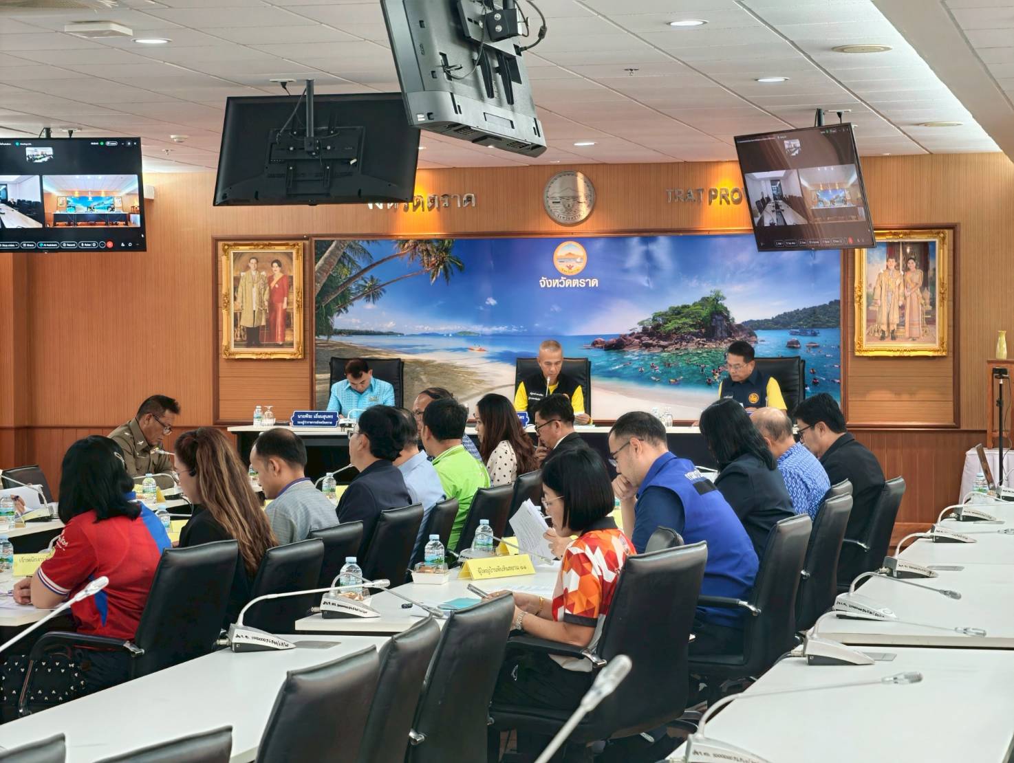 วันที่ 1 ตุลาคม 2568 นายสายชล เจริญพร หัวหน้ากลุ่มอารักขาพืช รักษาราชการแทนเกษตรจังหวัดตราด มอบหมายให้นายรัฐศักดิ์ คุณโลหิต นักวิชาการส่งเสริมการเกษตรชำนาญการ และนางสาววัชรี ป่างปู นักวิชาการส่งเสริมการเกษตรชำนาญการ เข้าร่วมการประชุมคณะกรรมการดำเนินงานโครงการทับทิมสยาม 01 จังหวัดตราด ครั้งที่ 2/2568 โดยมีระเบียบวาระสำคัญในการติดตามการขออนุญาตใช้พื้นที่โครงการทับทิมสยาม 01 จังหวัดตราด และการพิจารณายกเลิกสิทธิสมาชิกที่ปฏิบัติผิดระเบียบสถาบันวิจัยจุฬาภรณ์ฯ ณ ห้องประชุมพลอยแดง ชั้น 4 ศาลากลางจังหวัดตราด