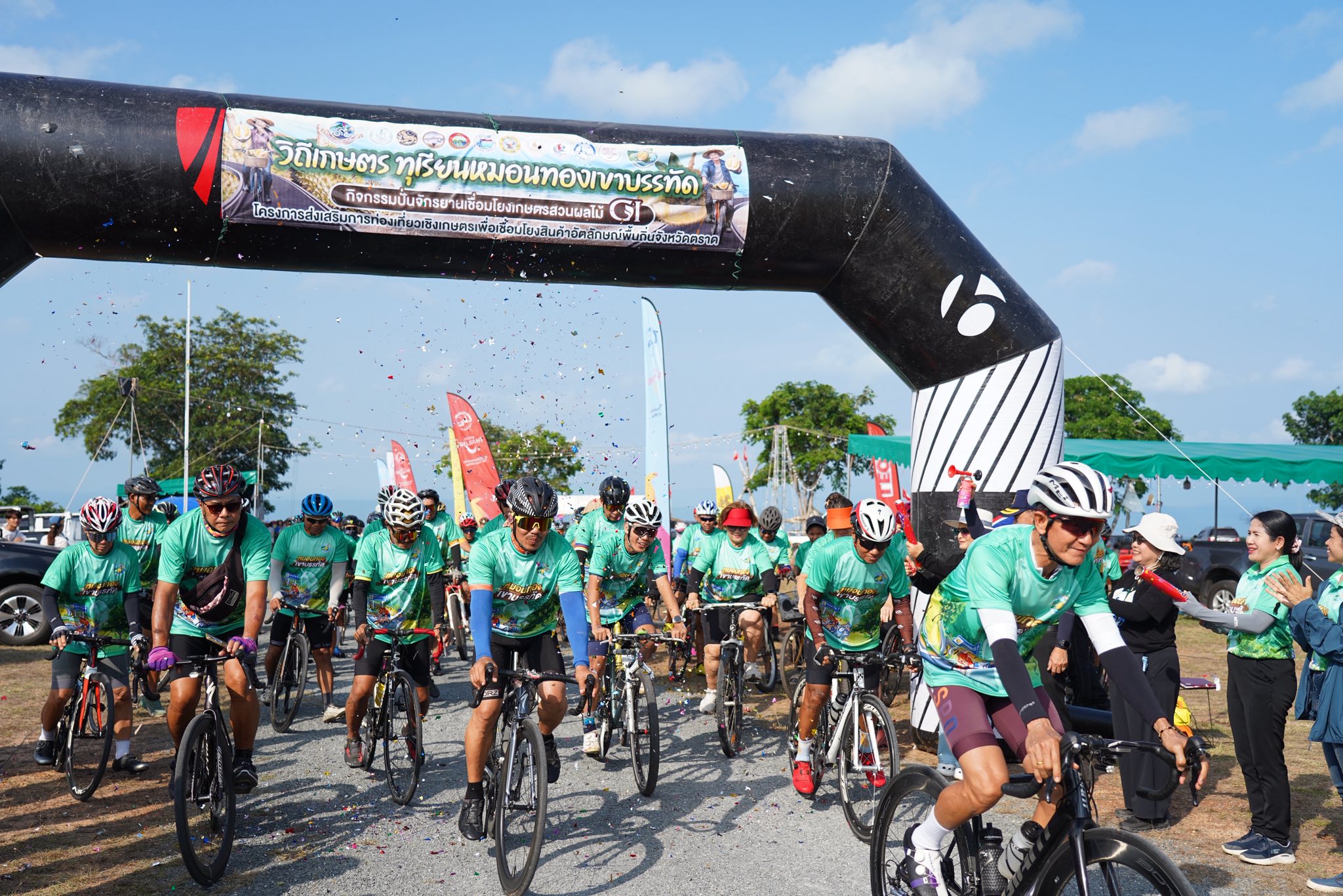 วันที่ 12 เมษายน 2569 สำนักงานเกษตรจังหวัดตราด นำโดย นางอมรรัตน์ ลิมป์สุคนธ์ เกษตรจังหวัดตราด พร้อมด้วยหัวหน้ากลุ่ม เกษตรอำเภอเมืองตราด และเจ้าหน้าที่สำนักงานเกษตรจังหวัดตราด จัดงาน “เทศกาลทุเรียนริมเล & หมอนทองเขาบรรทัด” โดยมีนายพิริยะ ฉันทดิลก ผู้ว่าราชการจังหวัดตราด เป็นประธานในการเปิดกิจกรรม ท่ามกลางเกษตรกร ผู้ประกอบการ นักท่องเที่ยว และประชาชนในพื้นที่เข้าร่วมงานอย่างคึกคัก ภายในงานมีกิจกรรมหลากหลาย อาทิ กิจกรรมแฟนพันธุ์แท้ทุเรียนไทย กิจกรรมเมนูสร้างสรรค์จากทุเรียน การประกวดออกแบบโลโก้ทุเรียนหมอนทองเขาบรรทัด GI รวมถึงกิจกรรมปั่นจักรยาน “ปั่นท่องตราด ตะลุยสวนผลไม้ GI” เพื่อเปิดเส้นทางท่องเที่ยวเชิงเกษตรให้ผู้เข้าร่วมได้สัมผัสวิถีสวนผลไม้ของชาวตราดอย่างใกล้ชิด นอกจากนี้ยังมีนายพีระ เอี่ยมสุนทร รองผู้ว่าราชการจังหวัดตราด ร่วมปล่อยขบวนจักรยาน สร้างสีสันและความคึกคักให้กับงานเป็นอย่างยิ่ง